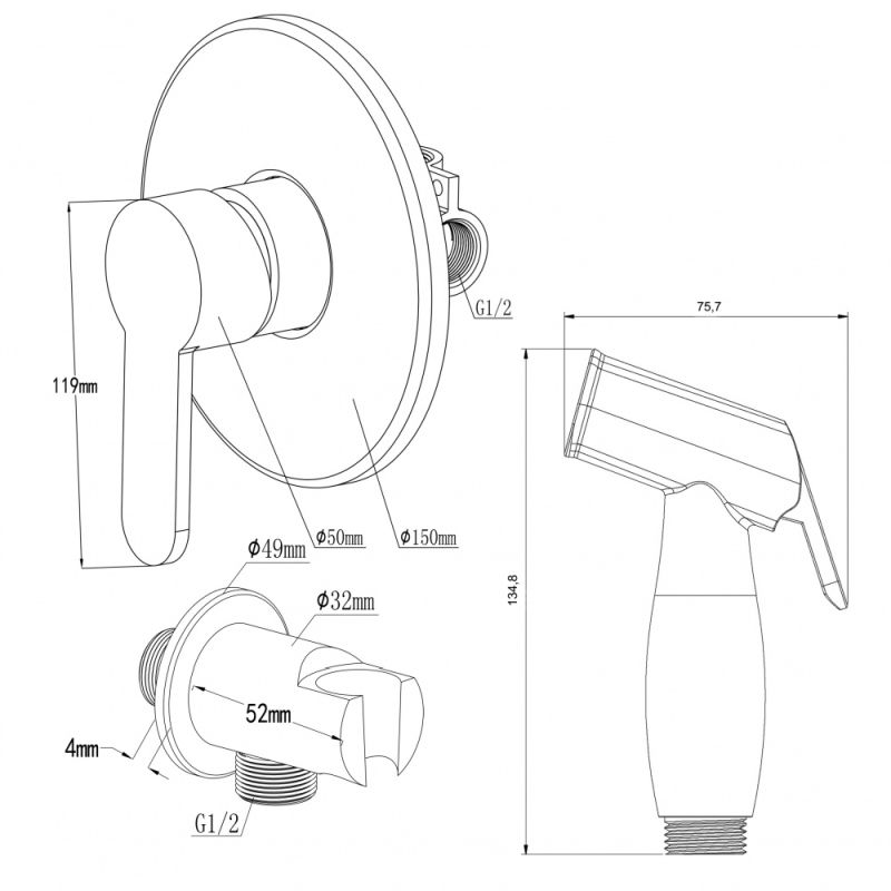 Смеситель скрытого монтажа с гигиенической лейкой Swedbe Platta 5525 хром