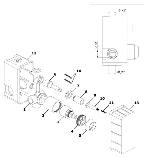 Встроенный смеситель для ванны с 2-функциями Azario Tevis AZ-15490711 (набор)