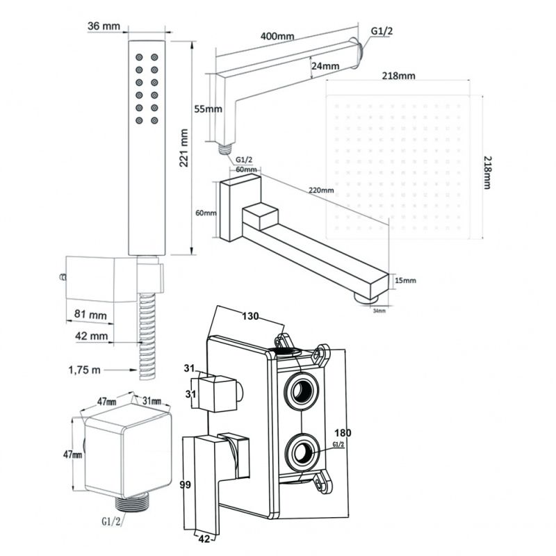 Душевой комплект со встроенным смесителем Swedbe Platta 5546
