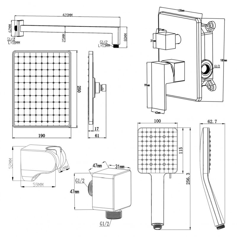 Душевой комплект со встроенным смесителем Swedbe Platta 5555B