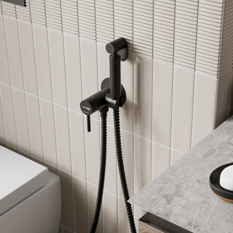 Смеситель с гигиеническим душем Wasserkraft A70638, встраиваемый, черный Soft-touch