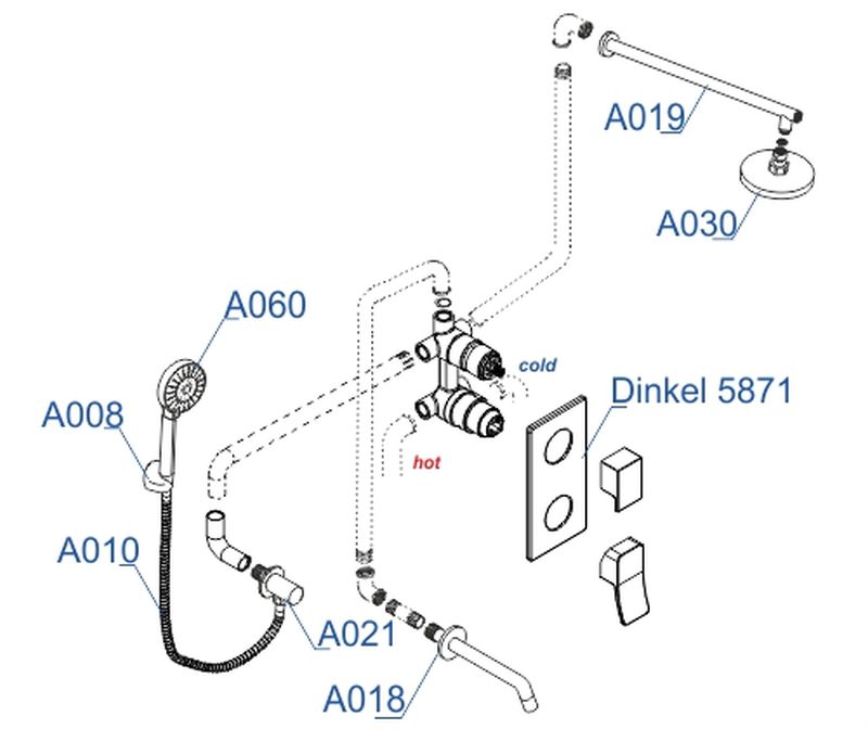 Встроенный смеситель для ванны на 3 положения Wasserkraft A175819 (душевой комплект) хром