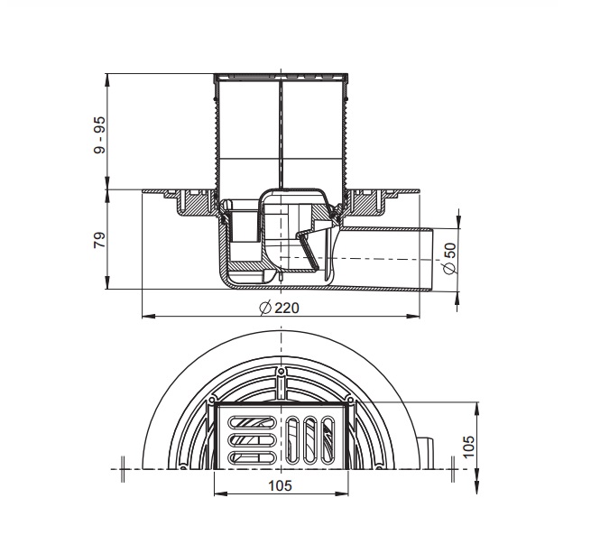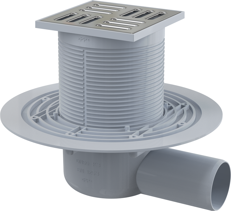 APV1321 Сливной трап 105 × 105/50, подводка – боковая, решетка – нержавеющая сталь, гидрозатвор – комбинированный