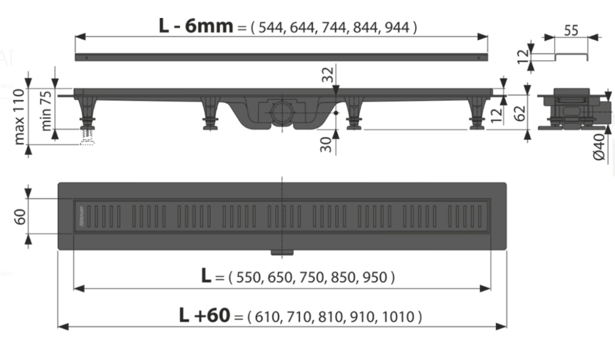 Регулируемые монтажные ножки 0–35 мм, позволяют быстро и удобно установить желоб и выровнять его в горизонтальной плоскости