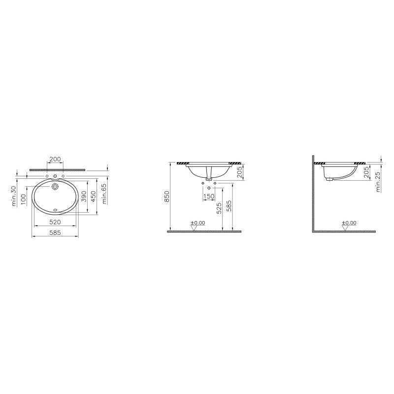 Раковина Vitra Arkitekt встраив.снизу 52 см, белый