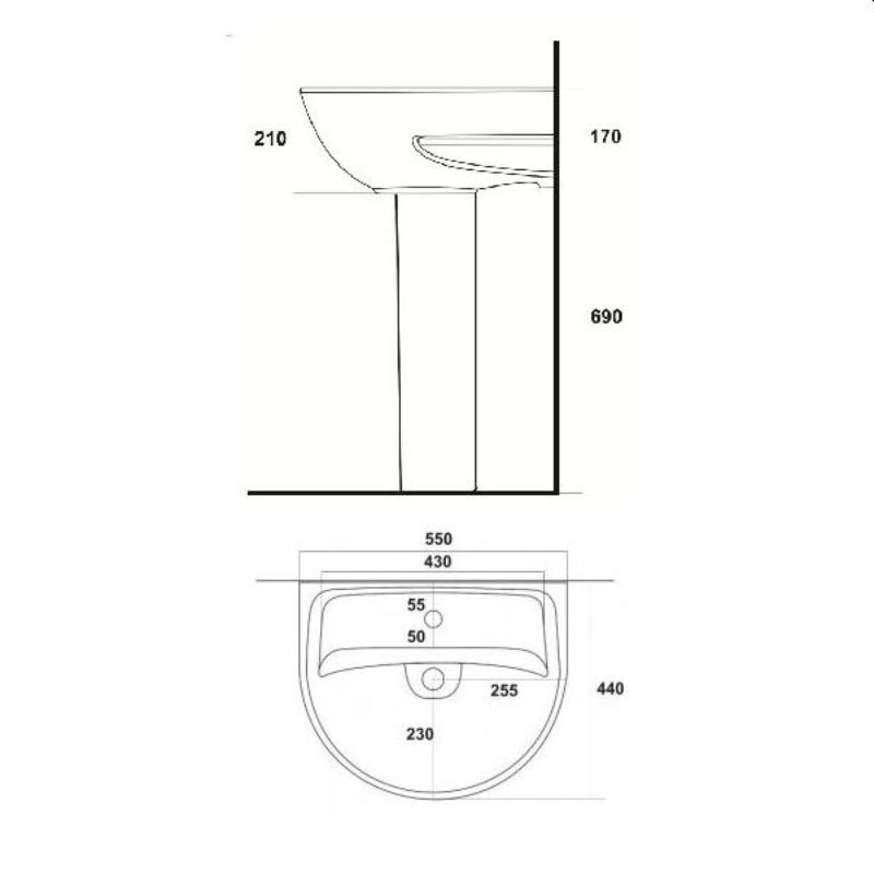 Sanita Умывальник Эталон 55. Пьедистал приобретается отдельно
