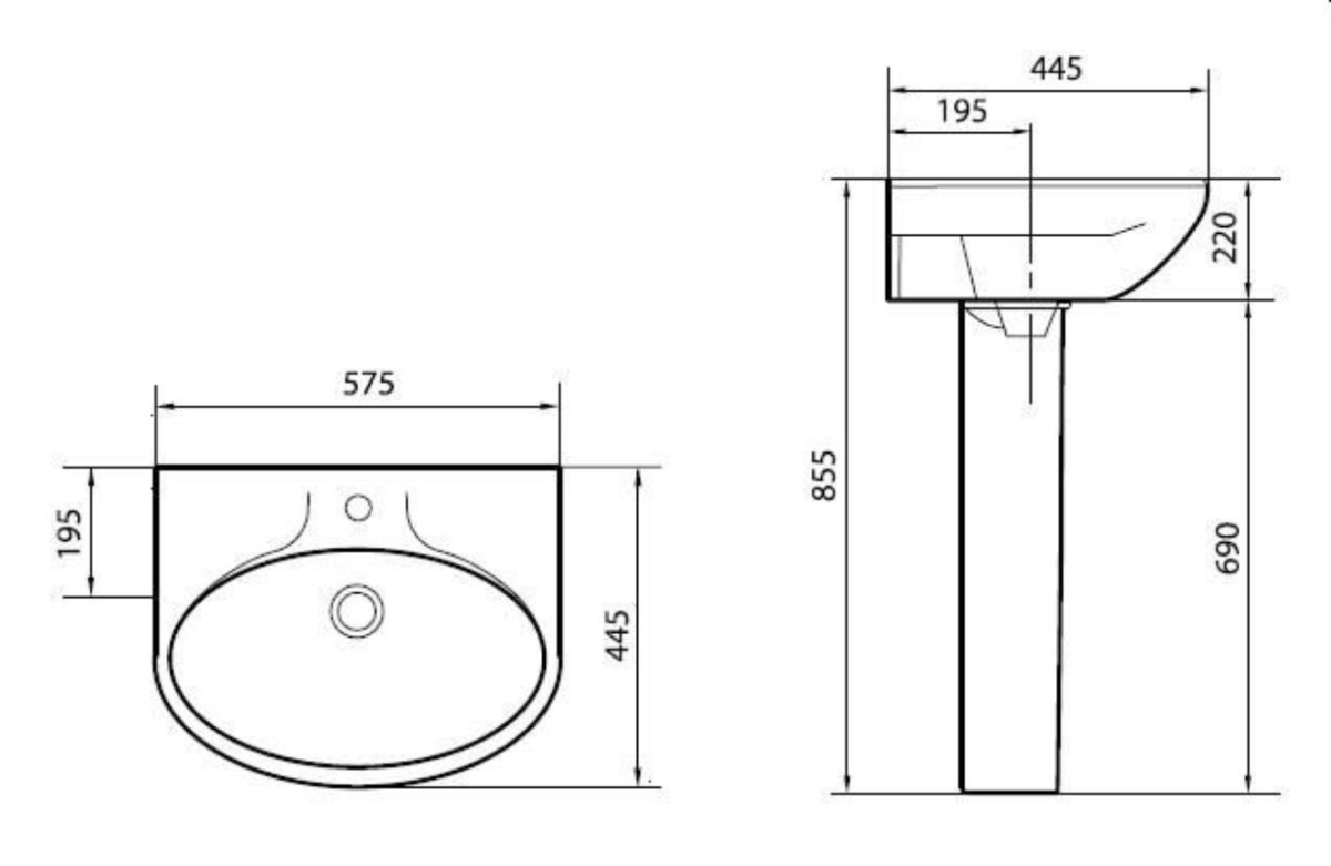 Умывальник Sanita Самарский 58 см. Пьедестал приобретается отдельно.
