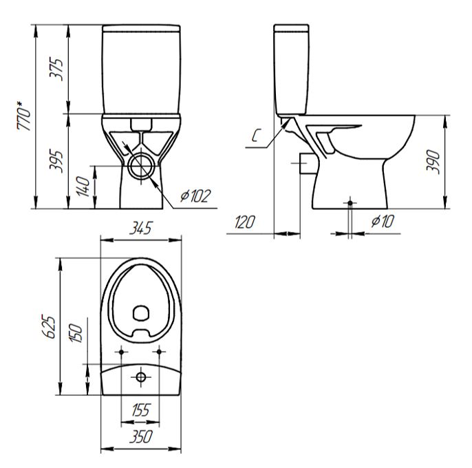 Унитаз напольный безободковый Cersanit Parva CleanOn, дюропласт с микролифтом