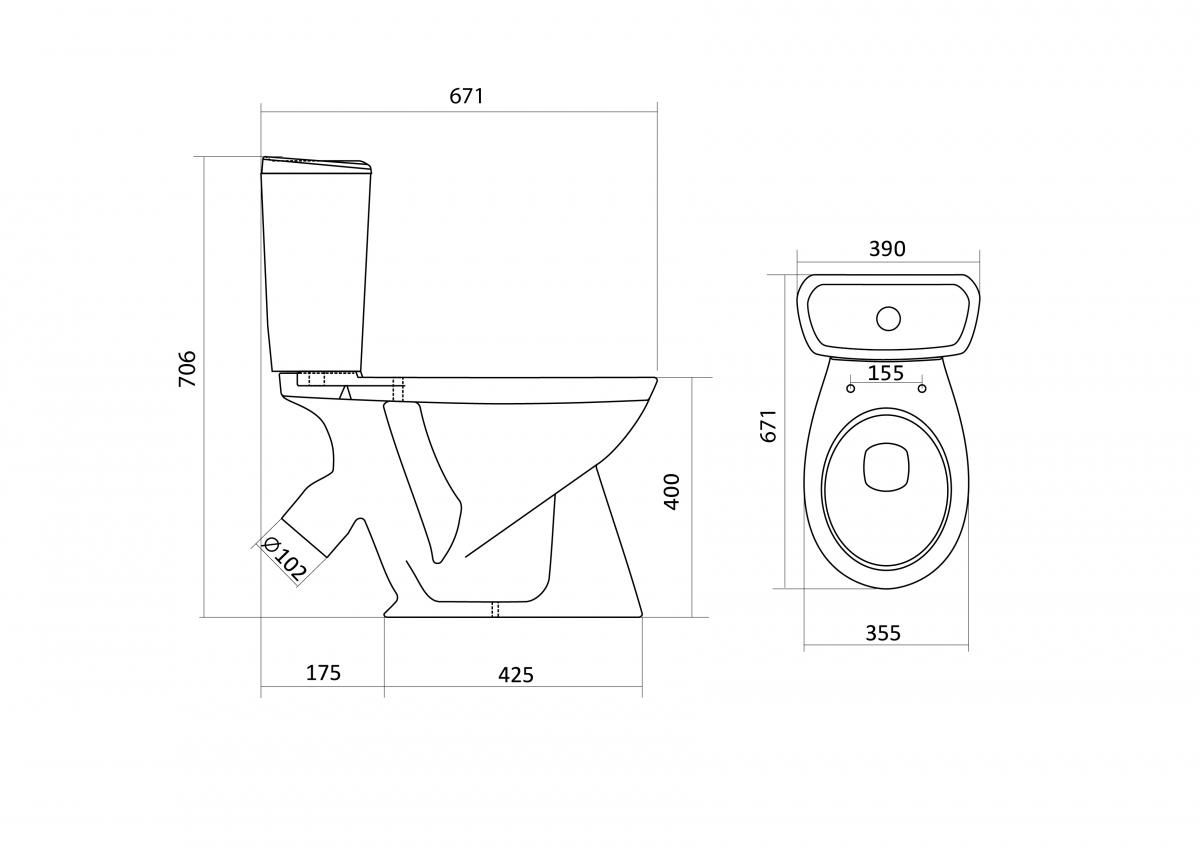Комплектация: чаша унитаза Бриз 1.WH11.0.384; бачок Бриз 1.WH11.0.639; комплект крепления к полу 1.WH10.8.693; двухрежимная арматура 1.WH30.2.105; дюропластовое сиденье 1.WH10.6.901