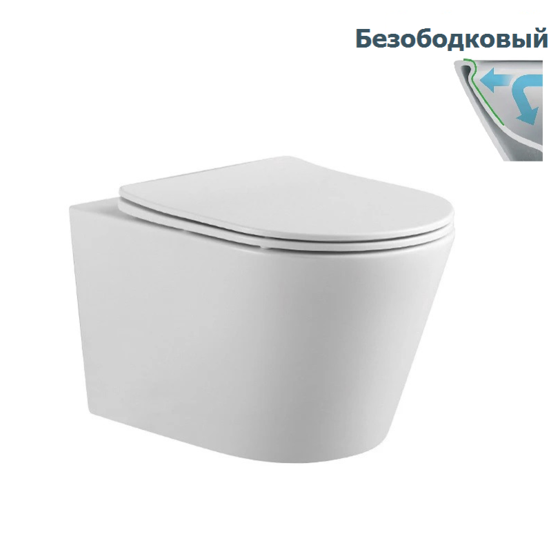 Унитаз подвесной безободковый Aquatek Вега AQ1905-00 тонкое сиденье с м/л