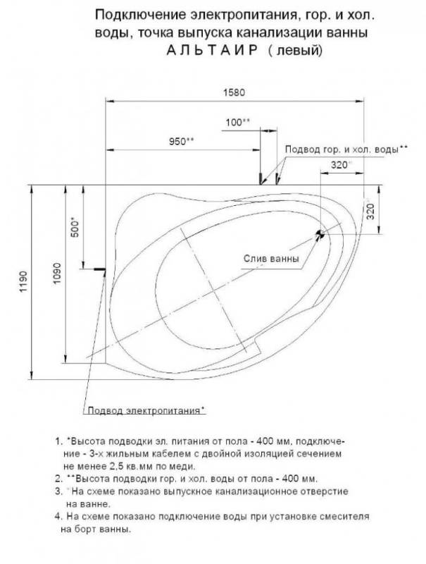 Высота ванны, мм