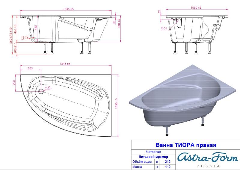Ванна Astra-Form Тиора 155*105 литой камень