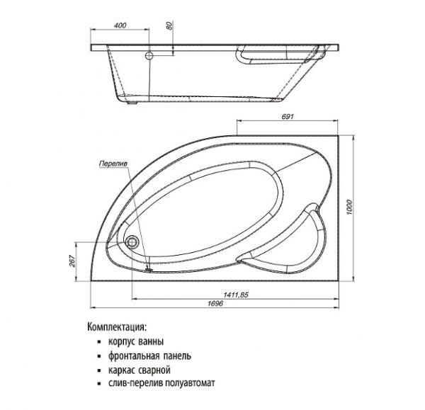 Форма ванны асимметричная