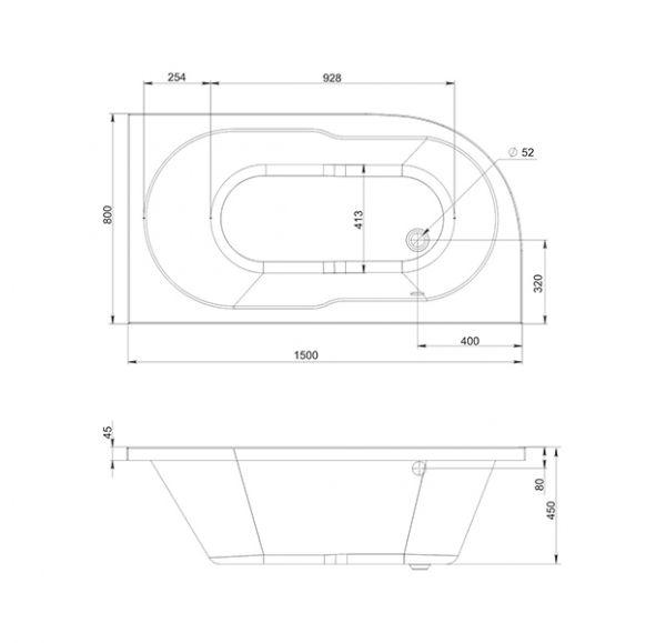 Форма ванны асимметричная