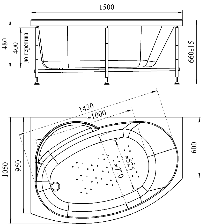 Дополнительно можно заказать фронтальную панель, слив-перелив, гидромассаж