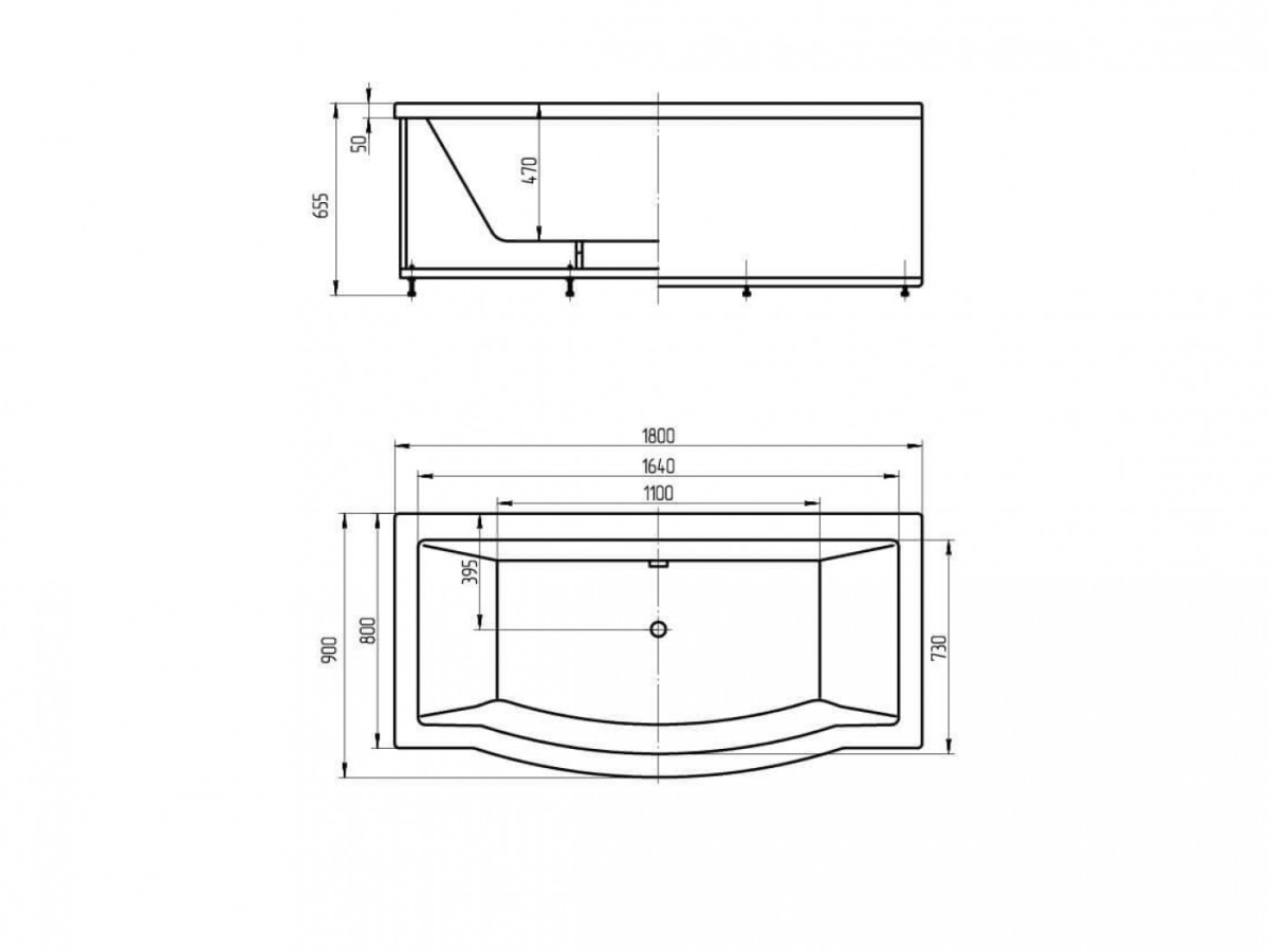 Длина ванны, мм 1800