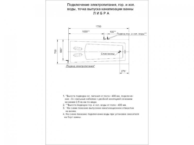 *На фотографии, ванна представлена в максимально возможной комплектации с гидромассажем.