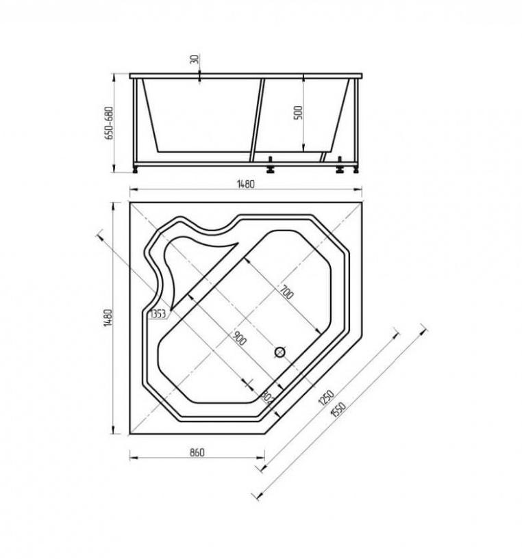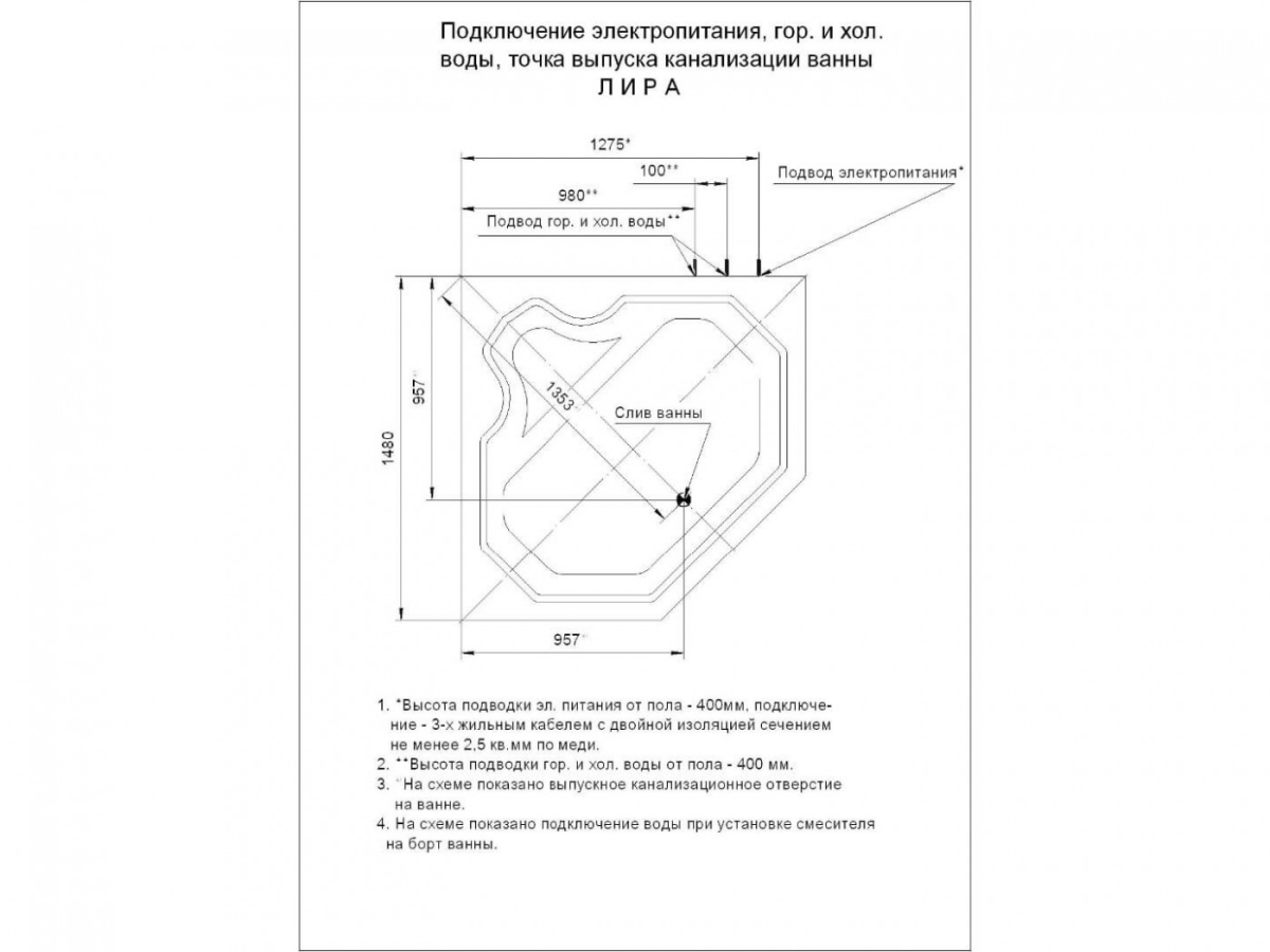 *На фотографии, ванна представлена в максимально возможной комплектации с гидромассажем.