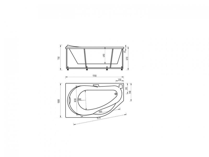 Форма ванны асимметричная