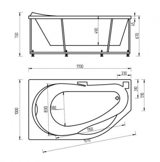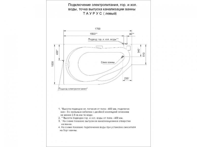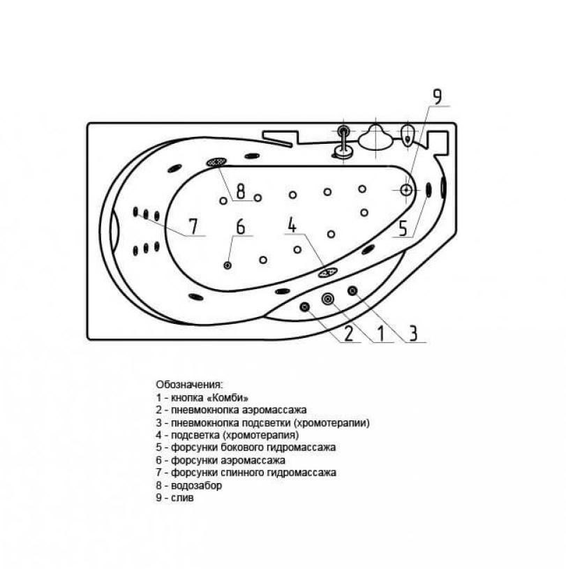 *На фотографии, ванна представлена в максимально возможной комплектации с гидромассажем.
