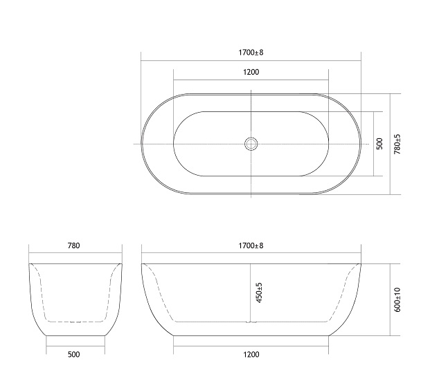 Длина ванны, мм 1700