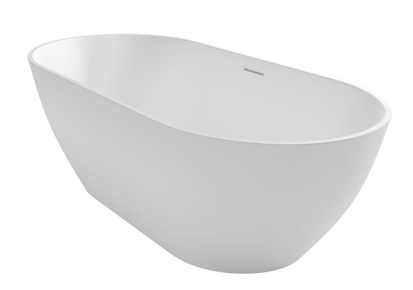 Ванна отдельностоящая, натуральный Литьевой мрамор, МАТОВАЯ, скрытый слив-перелив без обрамления, крышка сифона хром. Вес 150 кг, объем 260 л