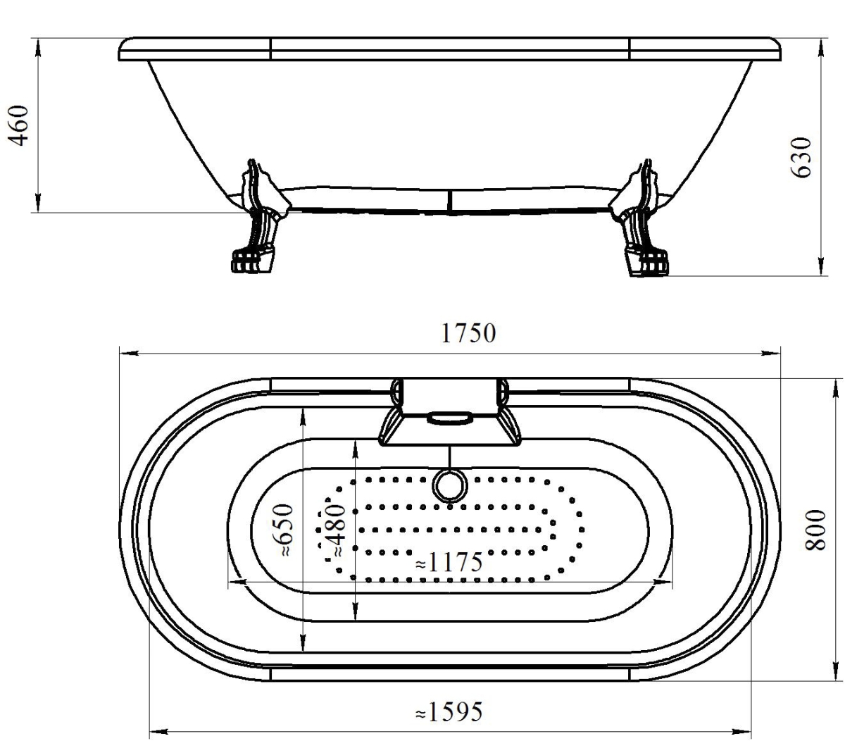 Высота ванны, мм 630