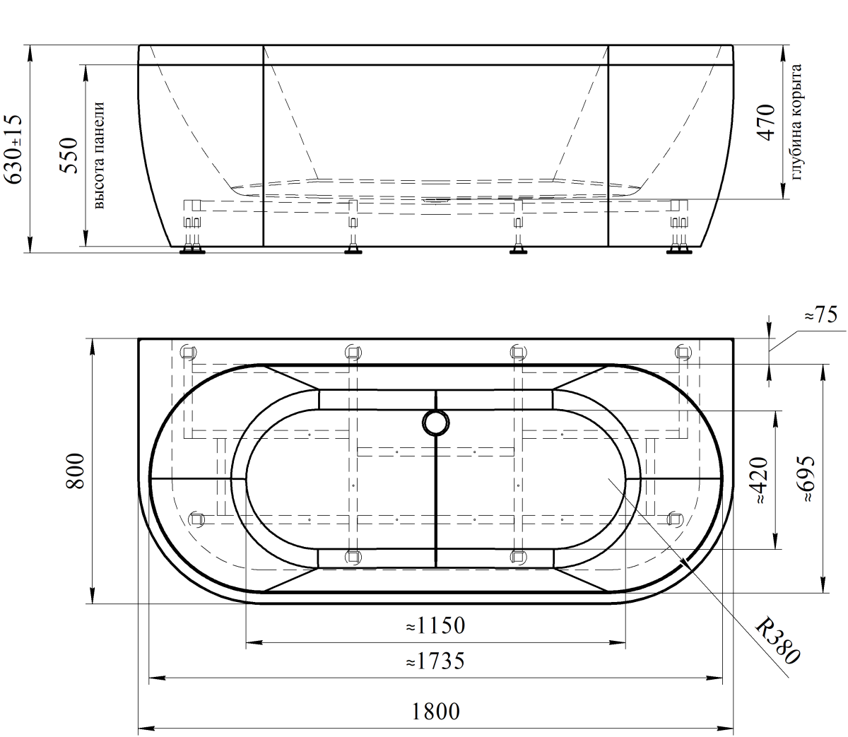 выглядят стильно и современно, а также увеличивают полезный объем ванны, который составляет 270 литров