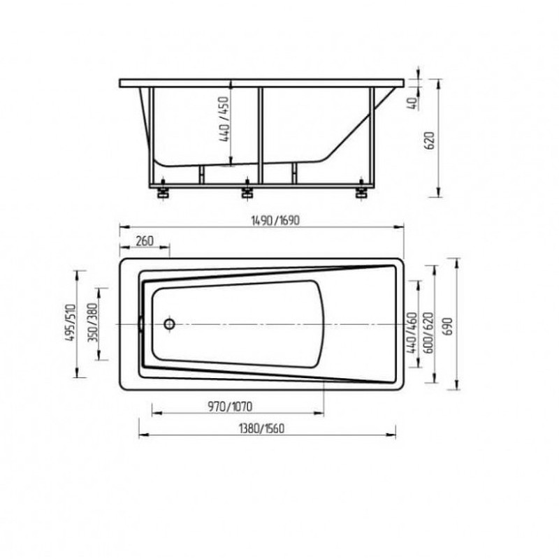 Длина ванны, мм