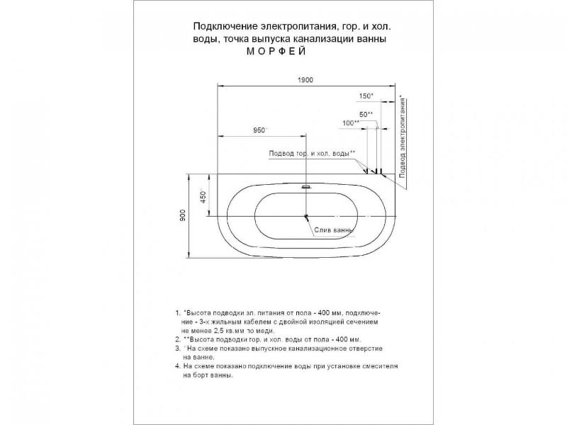Акриловая ванна Aquatek Морфей 190*90.