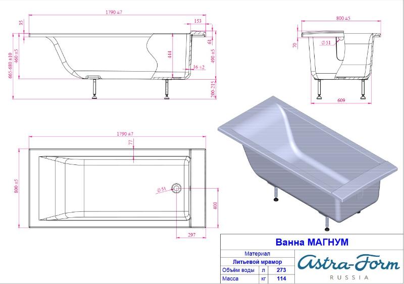 Ванна из литого мрамора Astra-Form Магнум 180*80