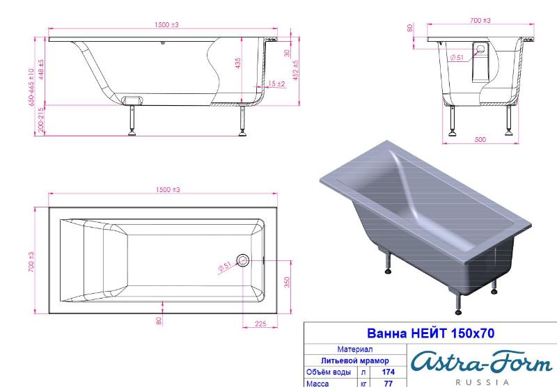 Ванна из литого мрамора Astra-Form Нейт 150 ,160, 170*70
