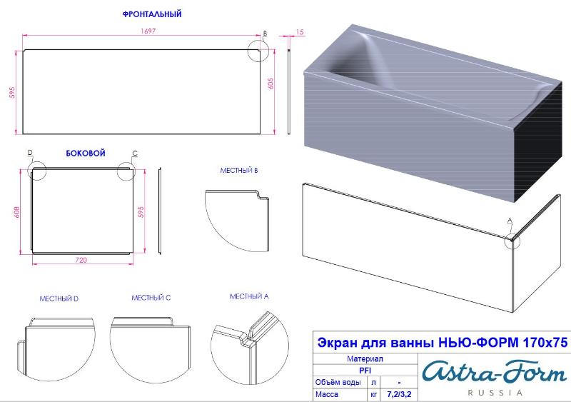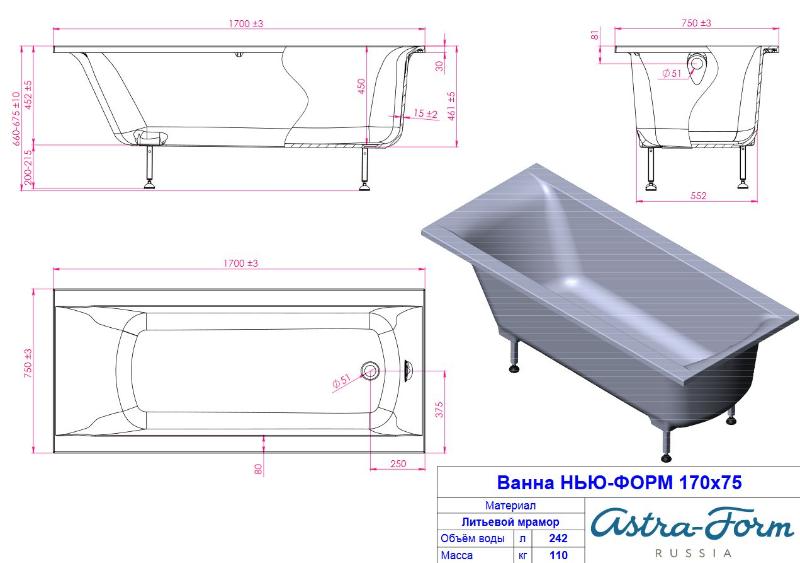 Ванна из литого мрамора Astra-Form Нью-Форм 170*75