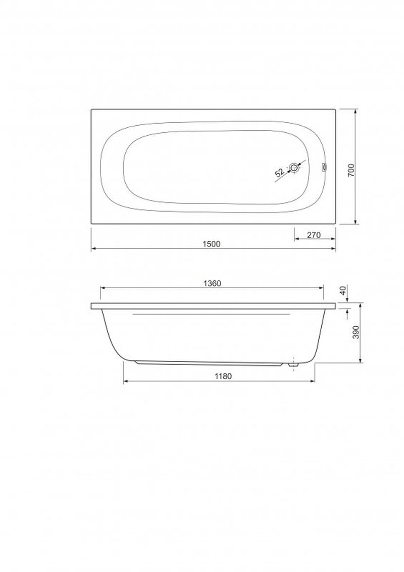 Размер ванны, см 150