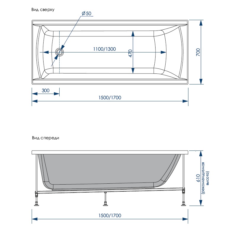 Ширина ванны, мм 700
