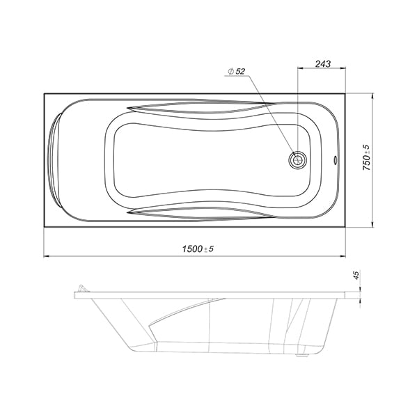 Размер ванны, см 150