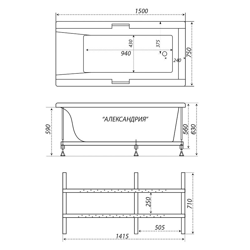 Акриловая ванна Тритон Алекса 150, 160, 170*75 + каркас
