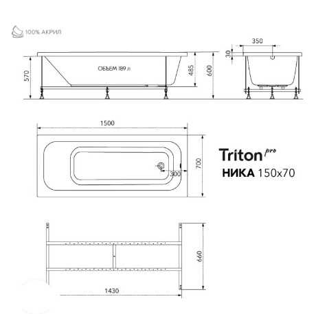 Ванна акриловая Тритон Ника 150*70, 170*70 + каркас