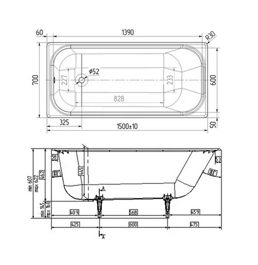 Высота ванны, мм 445 (без учета ножек)