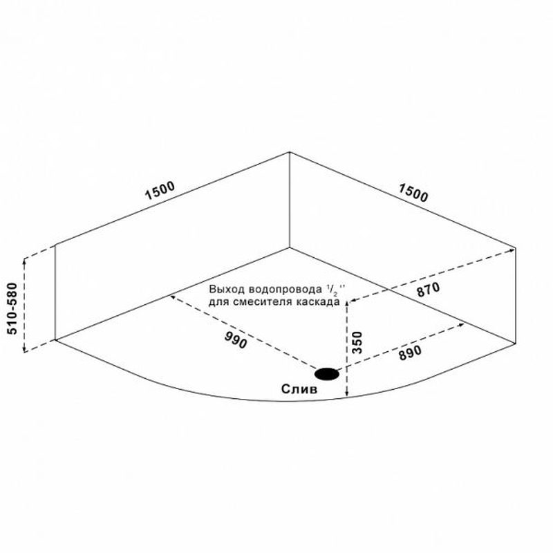 Угловая акриловая ванна BAS Аура 150*150 с усиленным каркасом.