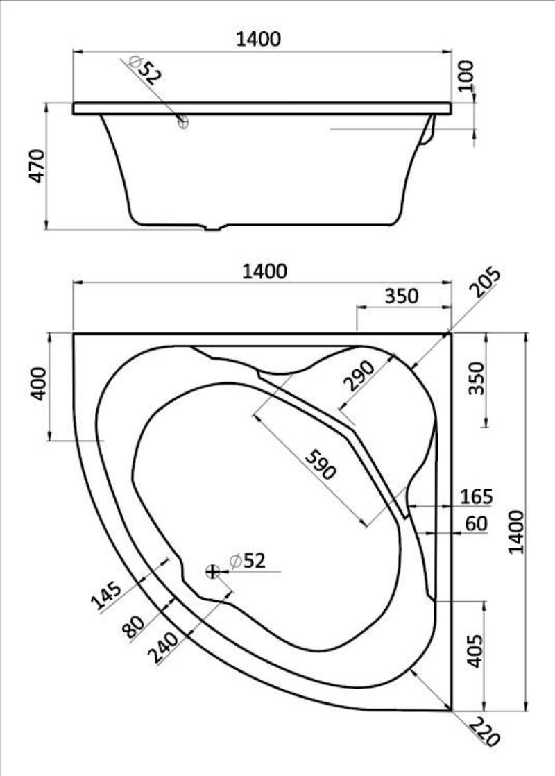 Ширина ванны, мм 1400