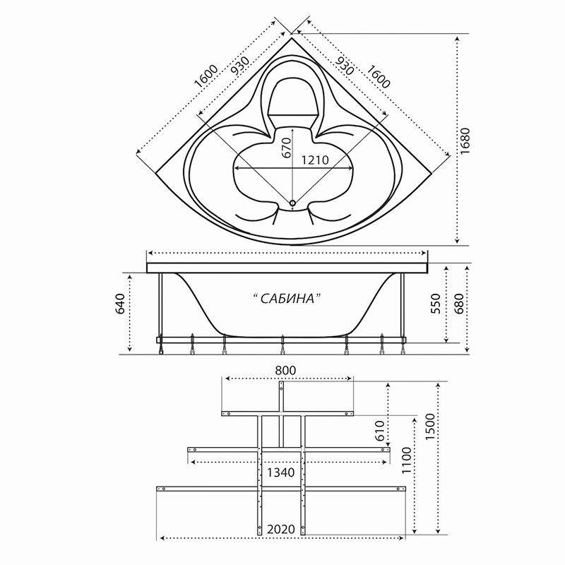 Ванна акриловая Triton Сабина 160*160 + каркас
